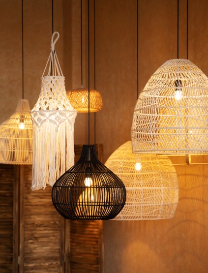 un grand tableau ou une photographie forte, un objet décoratif atypique, un tapis graphique, des luminaires originaux, des coussins ou textiles aux motifs assumés.